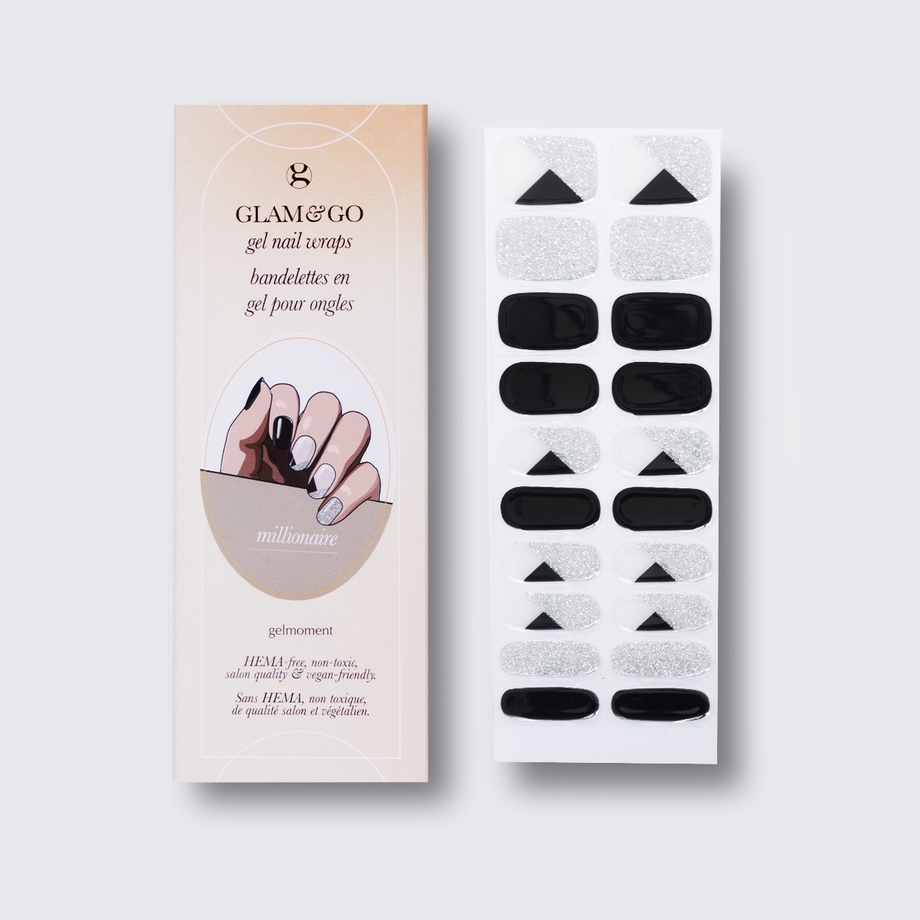 Our GLAM & GO gel nail wraps ensure that no matter how complex your chosen nail design, the application process remains incredibly simple. Our GLAM & GO gel nail wraps require no glue, base coat, or top coat—just peel them off the packaging, apply them to your nail, trim to size, cure twice, and voilà!